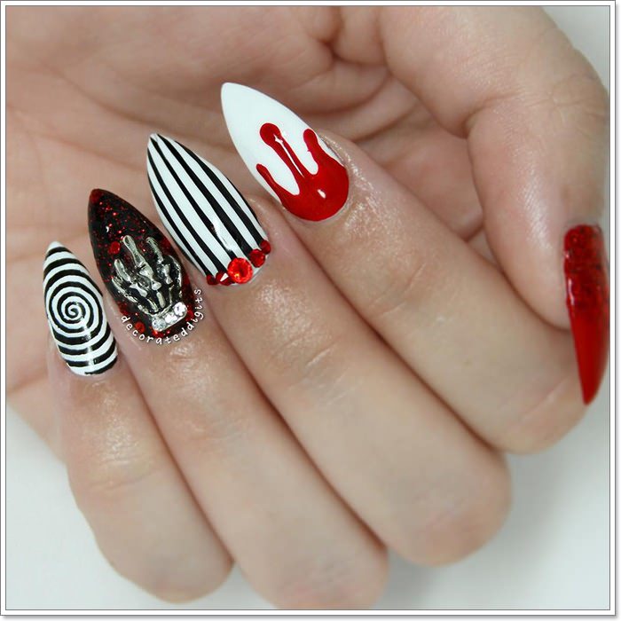 Be the Queen of the Evening with these glamorous and bloodthirsty nail artwork design. It’s excellent for a complicated Halloween social gathering, although perhaps not for the trick or treatin’ kiddies.
