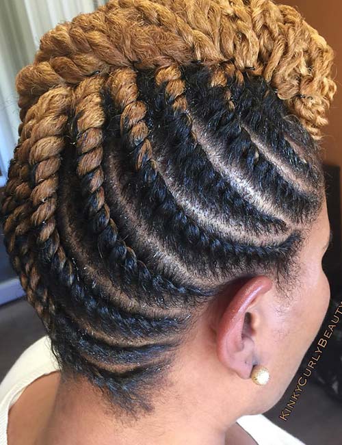 Women, if you love a little bit of experimenting with your hair then the hairstyles are a must-try. Flat braided hair looks good on women with various face shapes and body structures. The hairstyle doesn’t take a lot of time and hard work and is easy to be done. Flat twist hairstyles in short hairs look very good. After the hair is braided nicely creating some cornrows the hair can be simply left. Thick braids can be done taking all your hair and then the hair can be tied in a ponytail or the hair can also be tied up in a bun. The braided hair can be parted into two sections. The upper part can be tied in a bun and the lower part can be left as it is. Various designs can be done in the flat twisted hairstyle.
