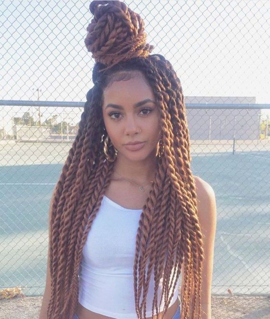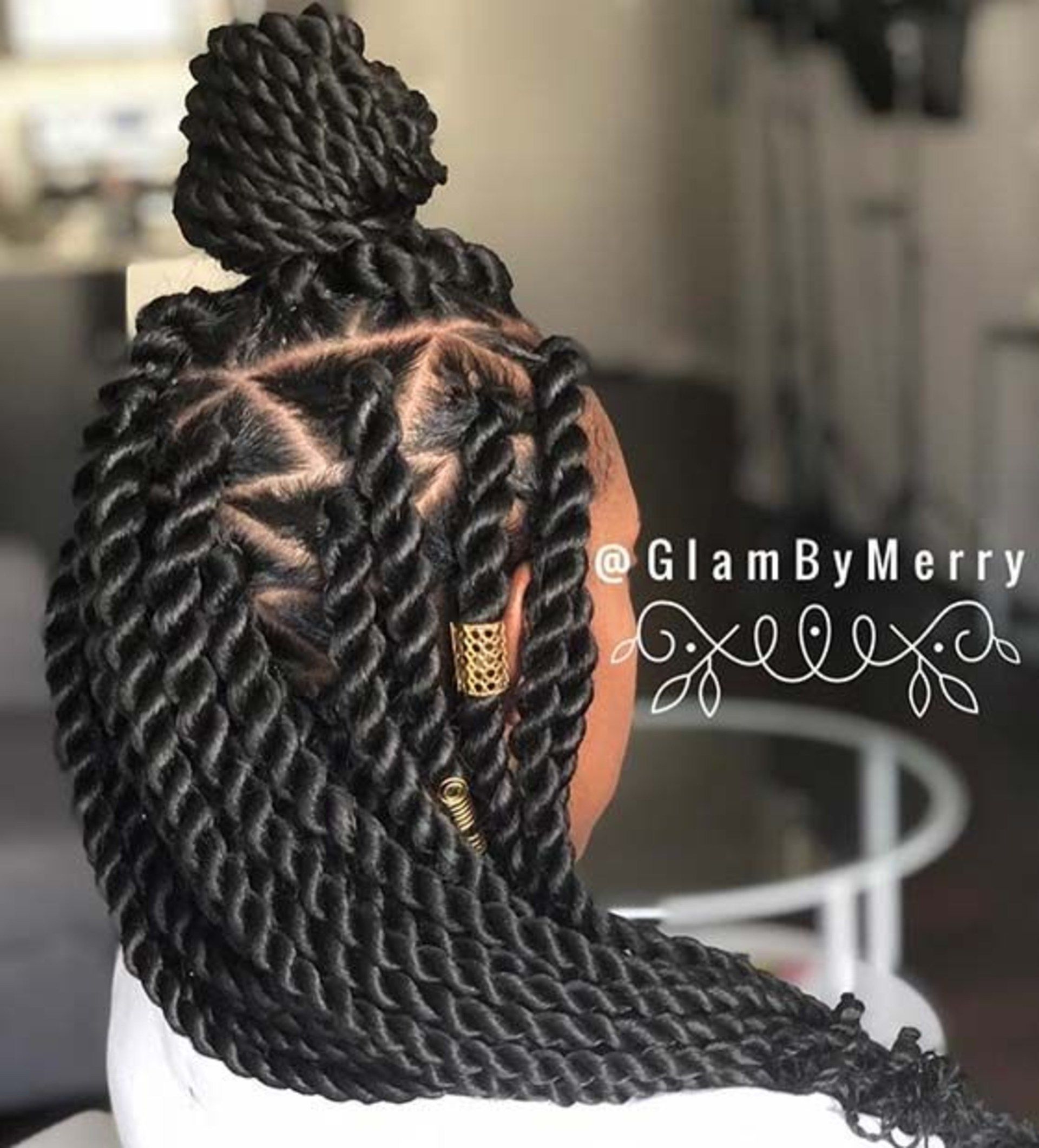 Another stylish hairstyle that you simply will produce alongside your twists might be a ponytail, and there might be a gorgeous example! The hair has been superbly adorned at the front whereas the particular ponytail options chunky Havana twists. it is a trendy ponytail which will suit everybody. This ponytail also has cords and cuffs too. you will be ready to recreate this ponytail or strive the ponytail while not the accessories for a subtler look.