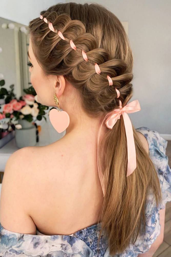 We have all seen many hair accessories that range from beads to stones to even small hair elastics. A ribbon, though is an unusual hairstyle and maybe that is the reason why this hairstyle looks so refreshing and cute. The pink ribbon also adds a girlish vibe to the look while the loosely done side braids add to the overall charm of the look. It’s a perfect hairstyle for casual outings, summer parties, beach days, etc. You can go boho chic with this look by wearing a cute dress and sandals.