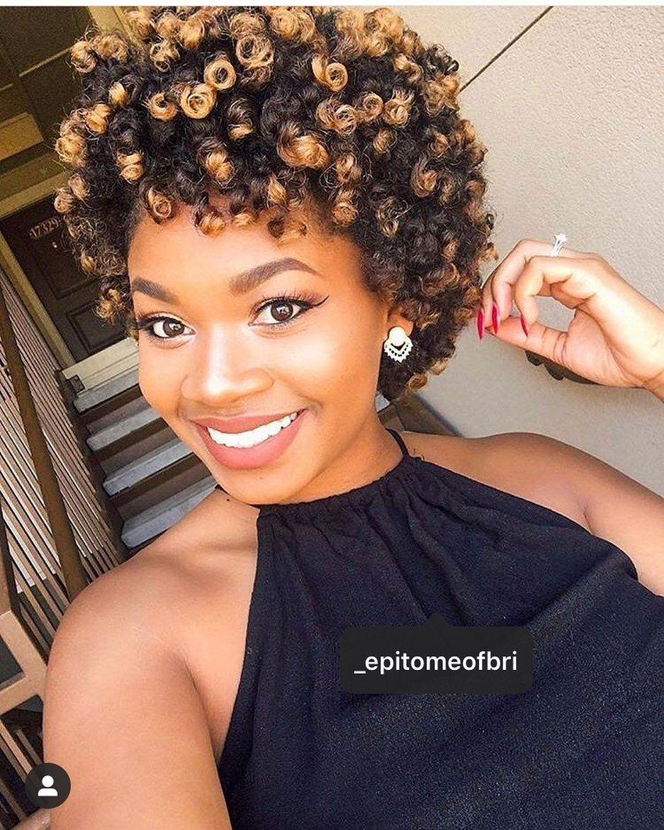 The newest trend in African American hairstyles is the use of bright, modern highlight shades to improve the beautiful look of natural curly patterns.
