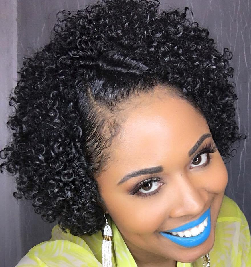 These thick, lush, corkscrew curls are everything – they will give energy to any woman who wears them and every woman who sees them. The curls top off the braids hidden underneath, making this an ideal style for protecting short natural hair while still looking fierce to death.