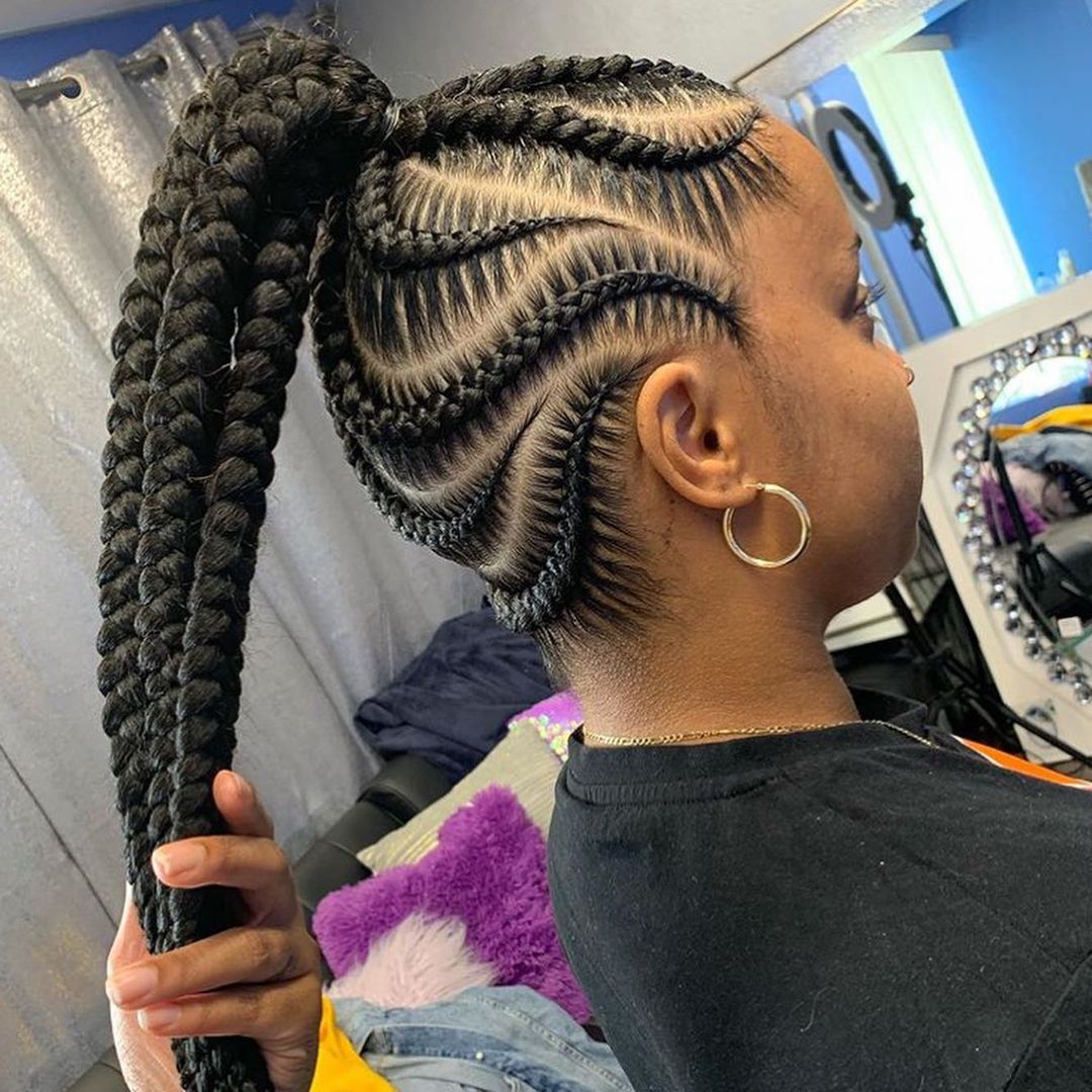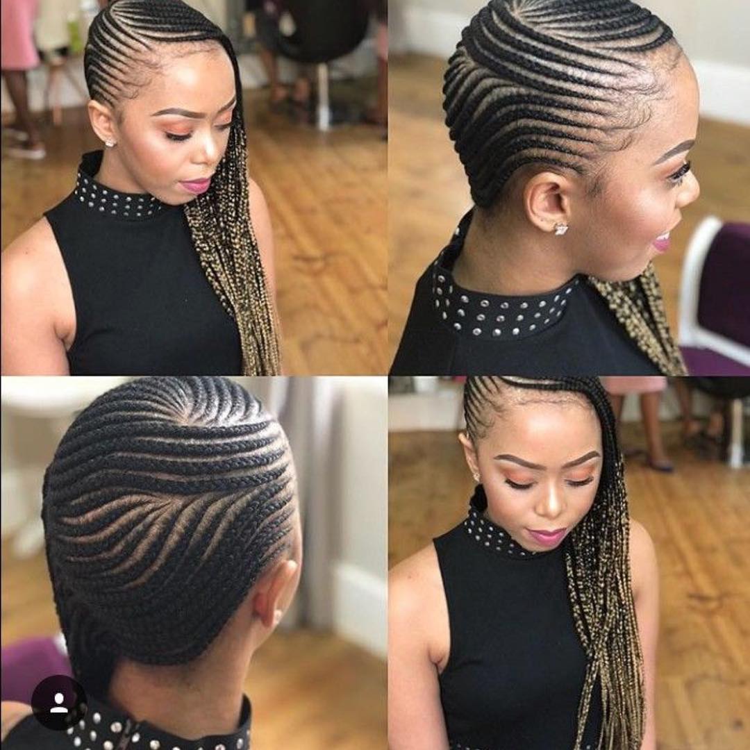 Unleash your sensuality with captivating cornrows, a versatile hairstyle that can be worn in various patterns and styles to enhance your facial features and overall charm.