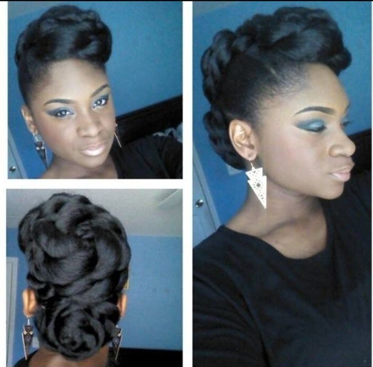 In just three steps, make retro hair. Retro style hair fits well with every woman. Black women also can try that model. Bun your all hair excluding front side. Then tease yours with the help of crepe comb and fix it. Use a scarf –especially red one- to obtain complete retro style.