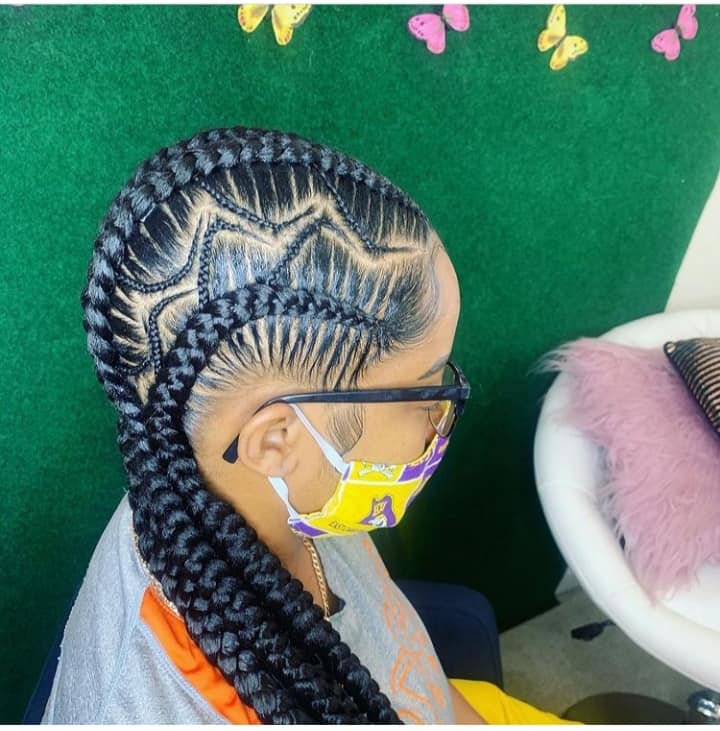 Another common type of jumbo feed in the braid is the simple all-back cornrow.